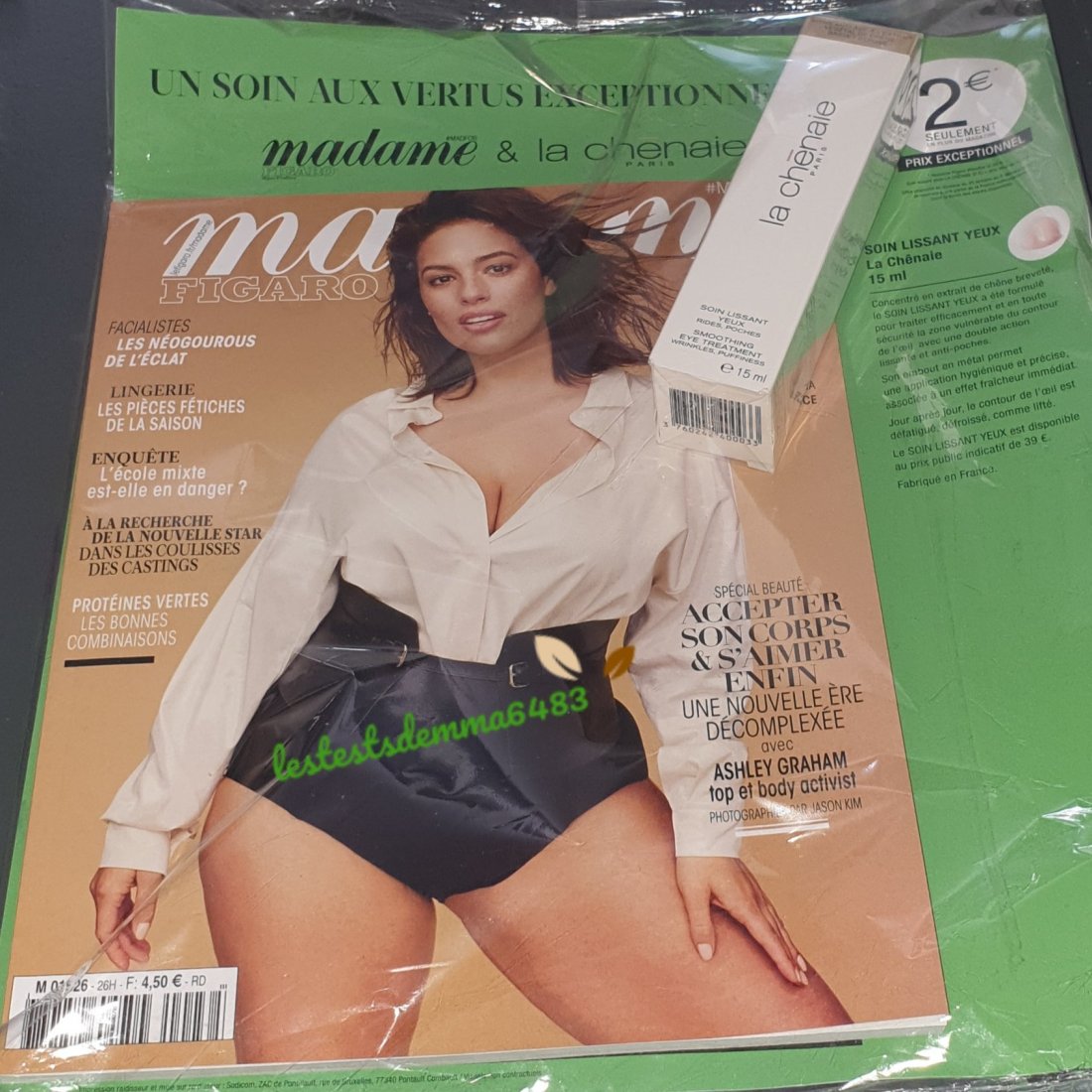 C’est avec le Madame Figaro et pour seulement 2€ en + du magazine ( qui est à 2,50€ ) vous avez le soin lissant contour des yeux ,format vente 15 ml, de La Chênaie Paris !!!