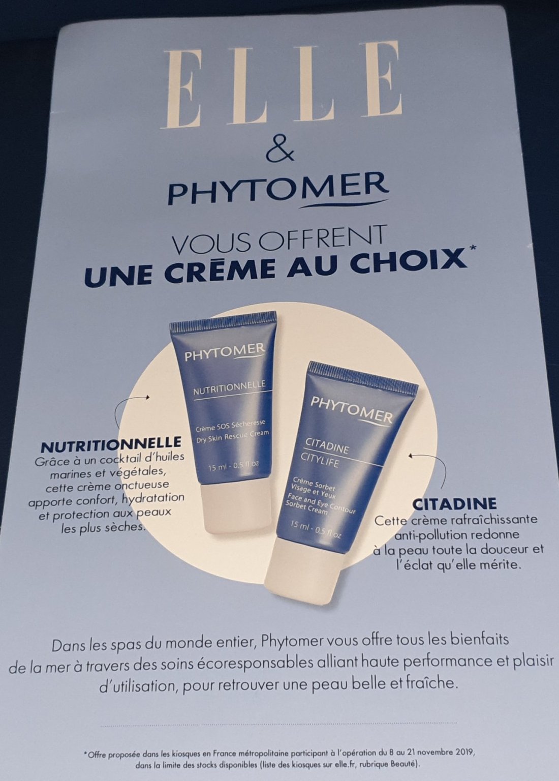 Ce nouveau magazine ELLE nous offre,cette fois-ci,une crème ( tube de 15 ml )de la marque Phytomer .