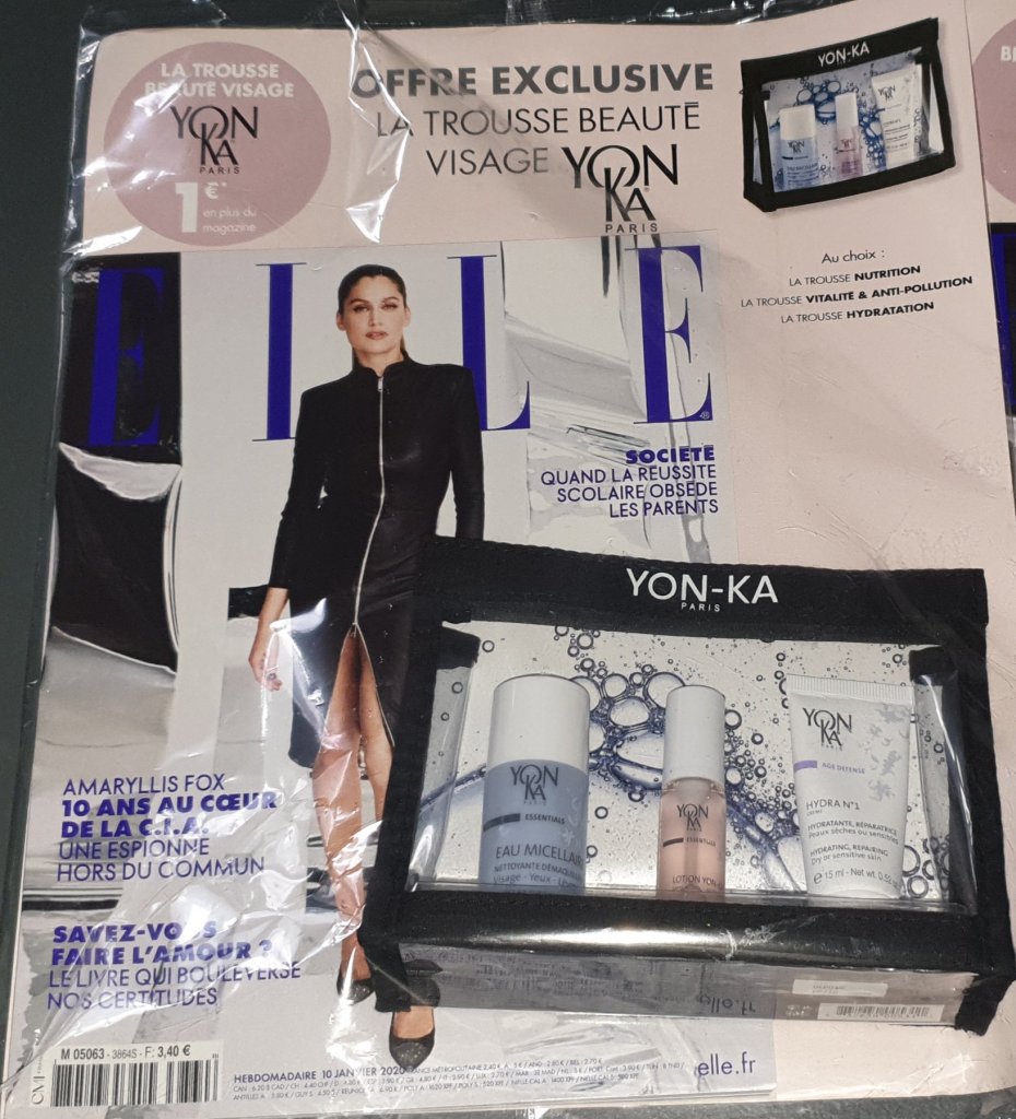 Dans ce numéro de Elle,vous trouvez un trousse avec 3 soins pour la peau de la marque Yon-Ka ( une jolie marque Française 🇨🇵 ) . Il existe 3 trousses différentes :