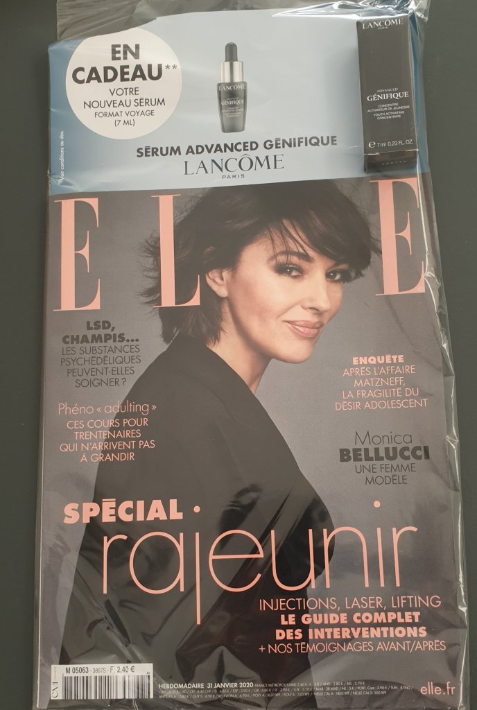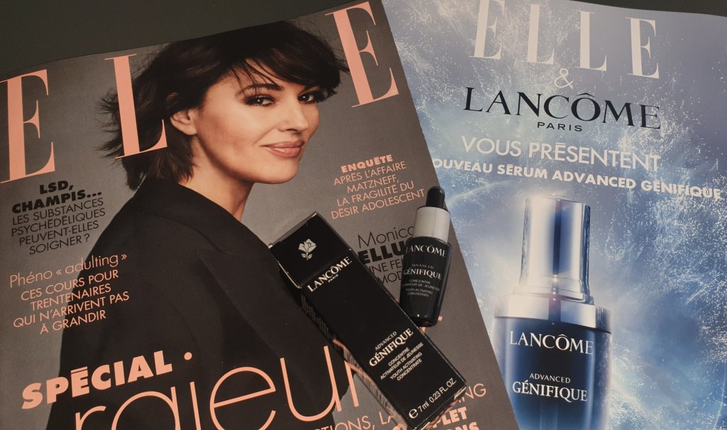 Depuis le 31 Janvier et jusqu’au 13 Février, en achetant le magazine Elle,vous aurez en cadeau,le nouveau sérum Advanced génifique de chez Lancôme ! C’est un format voyage de 7 ml,pratique pour tester !