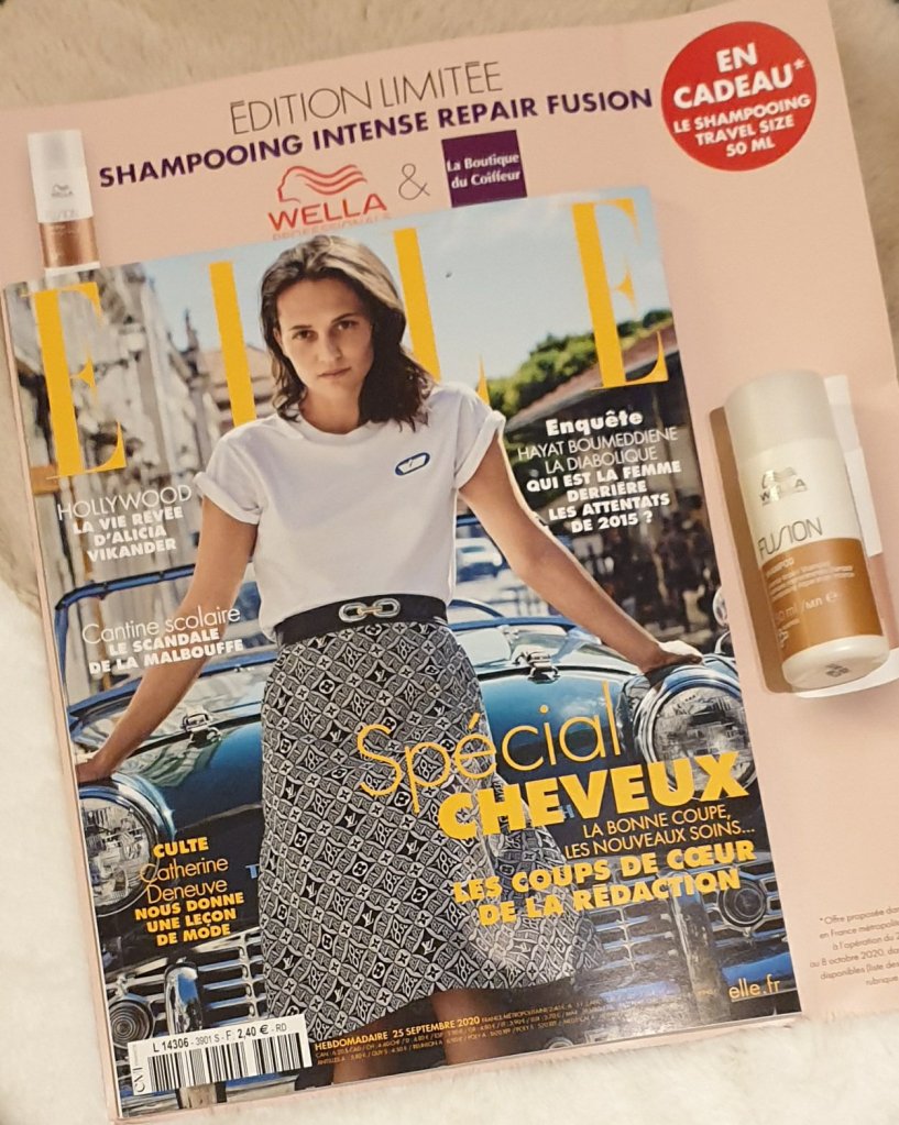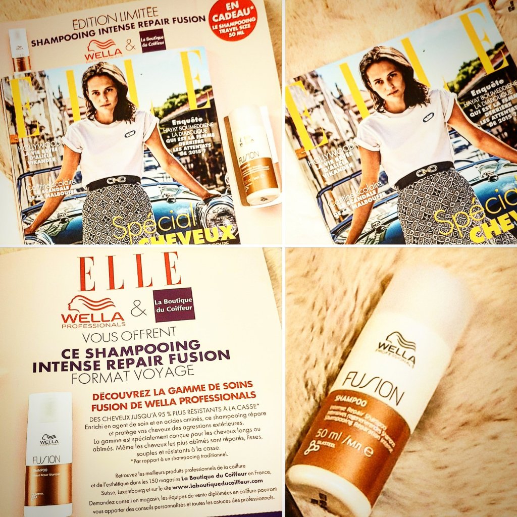 En cadeau avec le magazine Elle ,c’est un shampooing intense repair fusion de la marque Wella …C’est un format