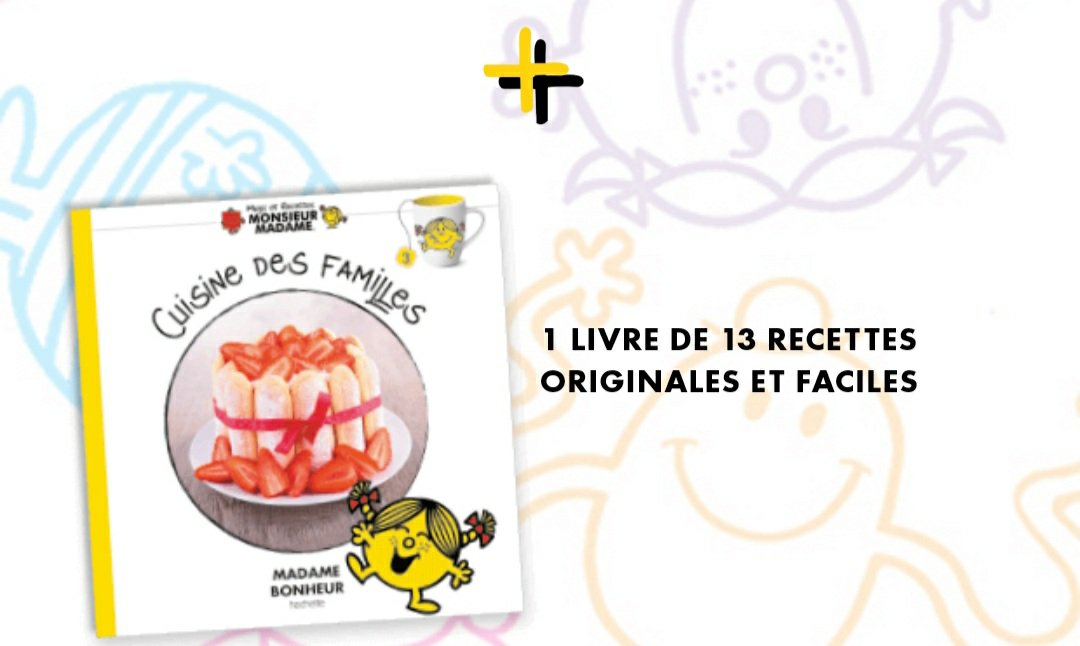 ~ Pour accompagner votre mug, un livre illustré avec toutes les meilleures recettes des Monsieur Madame. Apéros à partager de Madame Bavarde, cuisine du monde de Monsieur Curieux, recettes inratables de Madame Catastrophe… Chaque personnage vous propose sa thématique de cuisine pour s’amuser derrière les fourneaux et concocter de délicieux petits plats à déguster en famille ou entre amis. ~