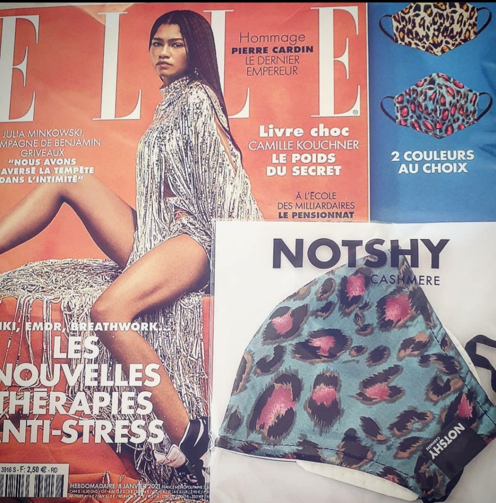 ~ Pour ce premier bon plan magazine de l’année 2021, Elle nous offre un masque en tissu Notshy Cashmere.