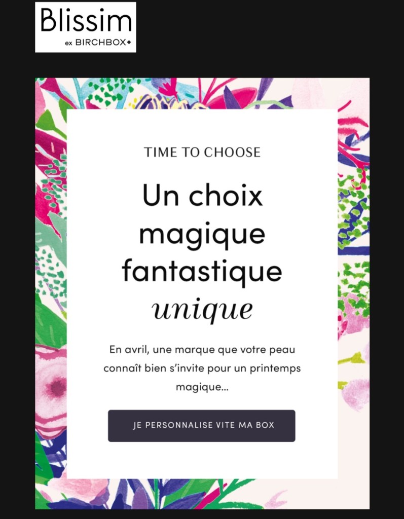 Pour les abonnĂ©es Blissim,n’oubliez pas de faire votre choix de box avant le 17 mars â ïž