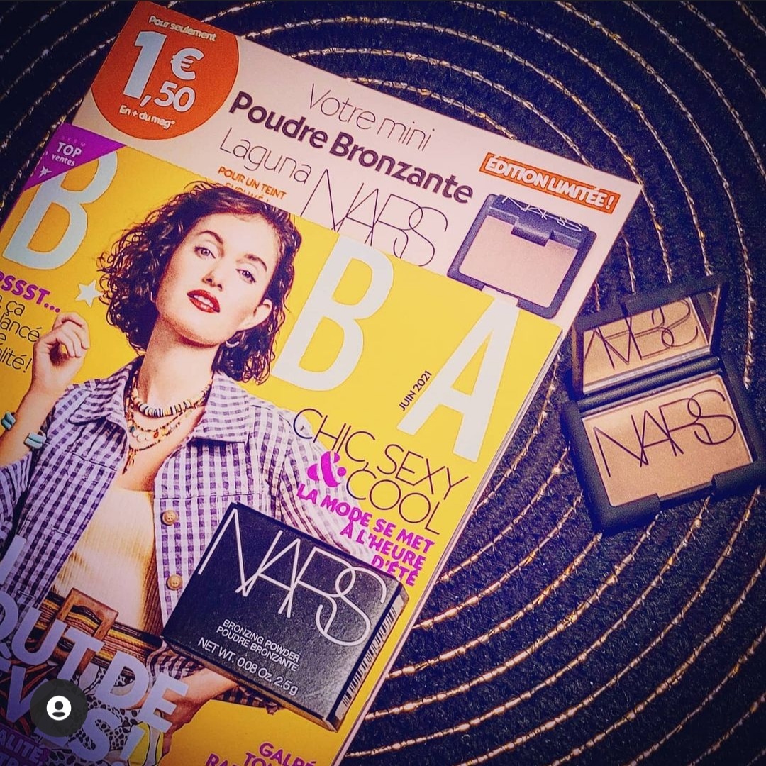 Pour 1,50€ en + du prix du magazine ( soit 3,40€ le tout ) une mini poudre bronzante Laguna de 2,5 g Nars est à choper 😍