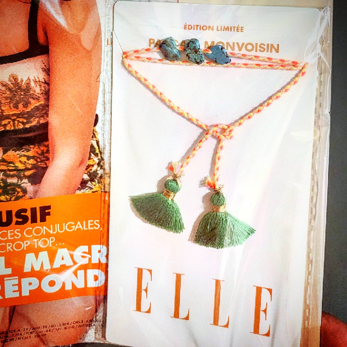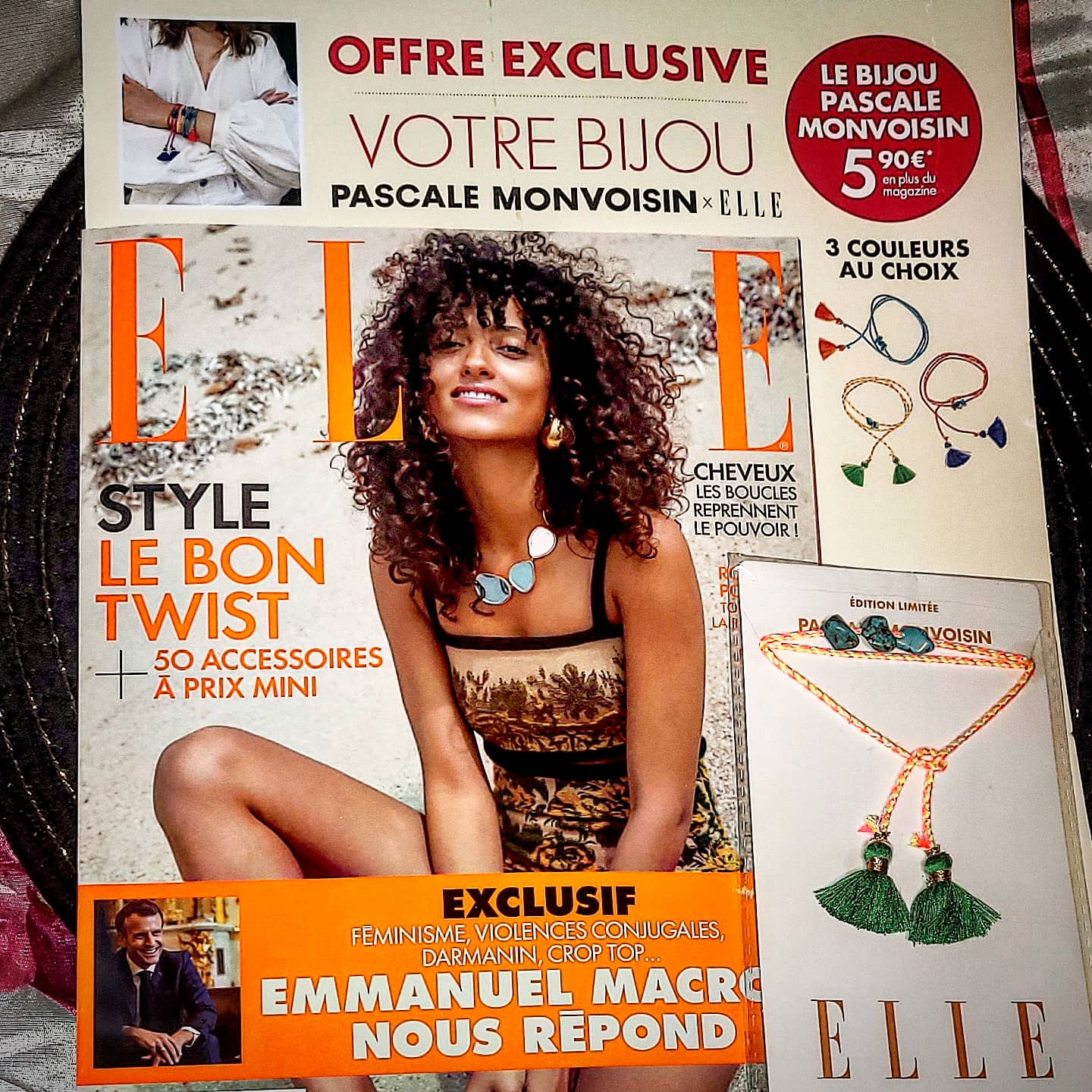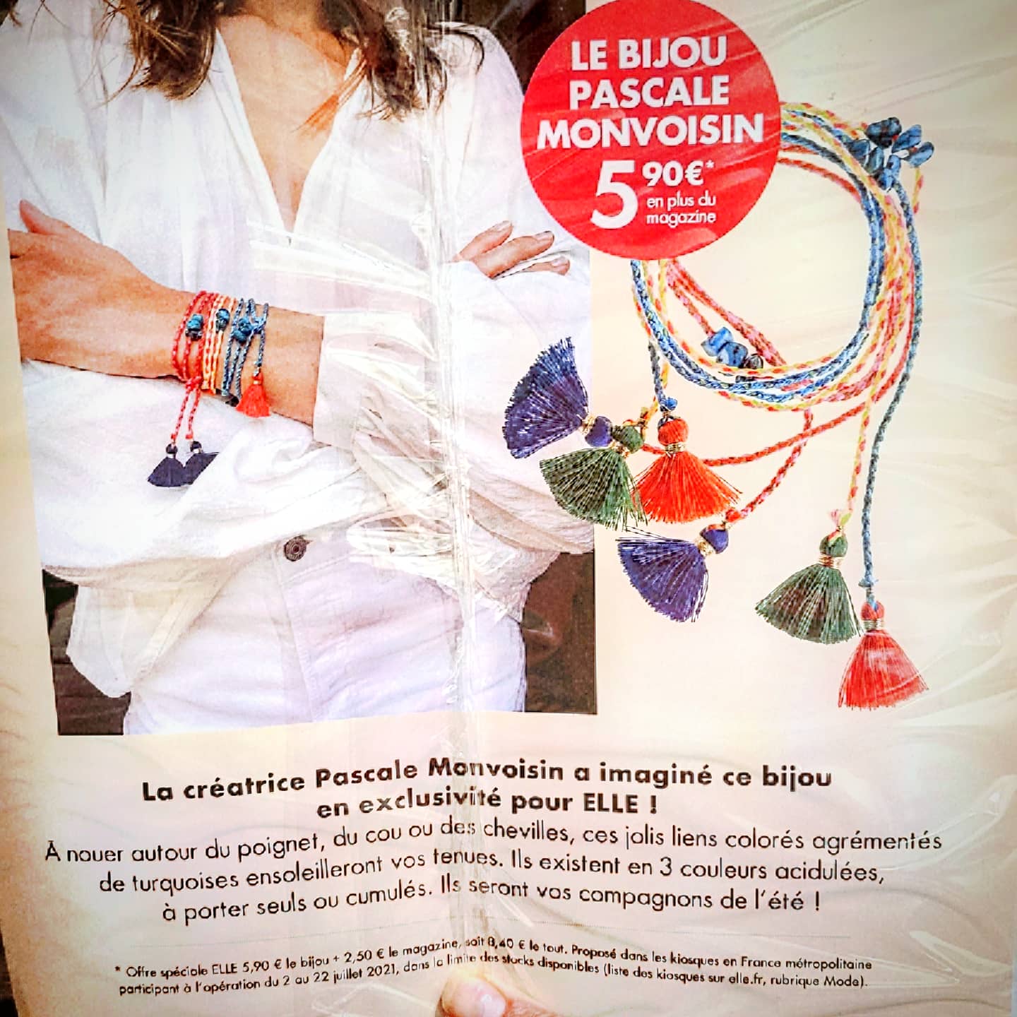 Pour 5,90€ en + du prix du magazine ( 2,50€ ) offrez-vous un joli bracelet à pompons ,spécialement créé par Pascale Monvoisin pour les lectrices du magazine Elle ! Le tout pour 8,40€ …. C’est une exclusivité et une édition limitée !