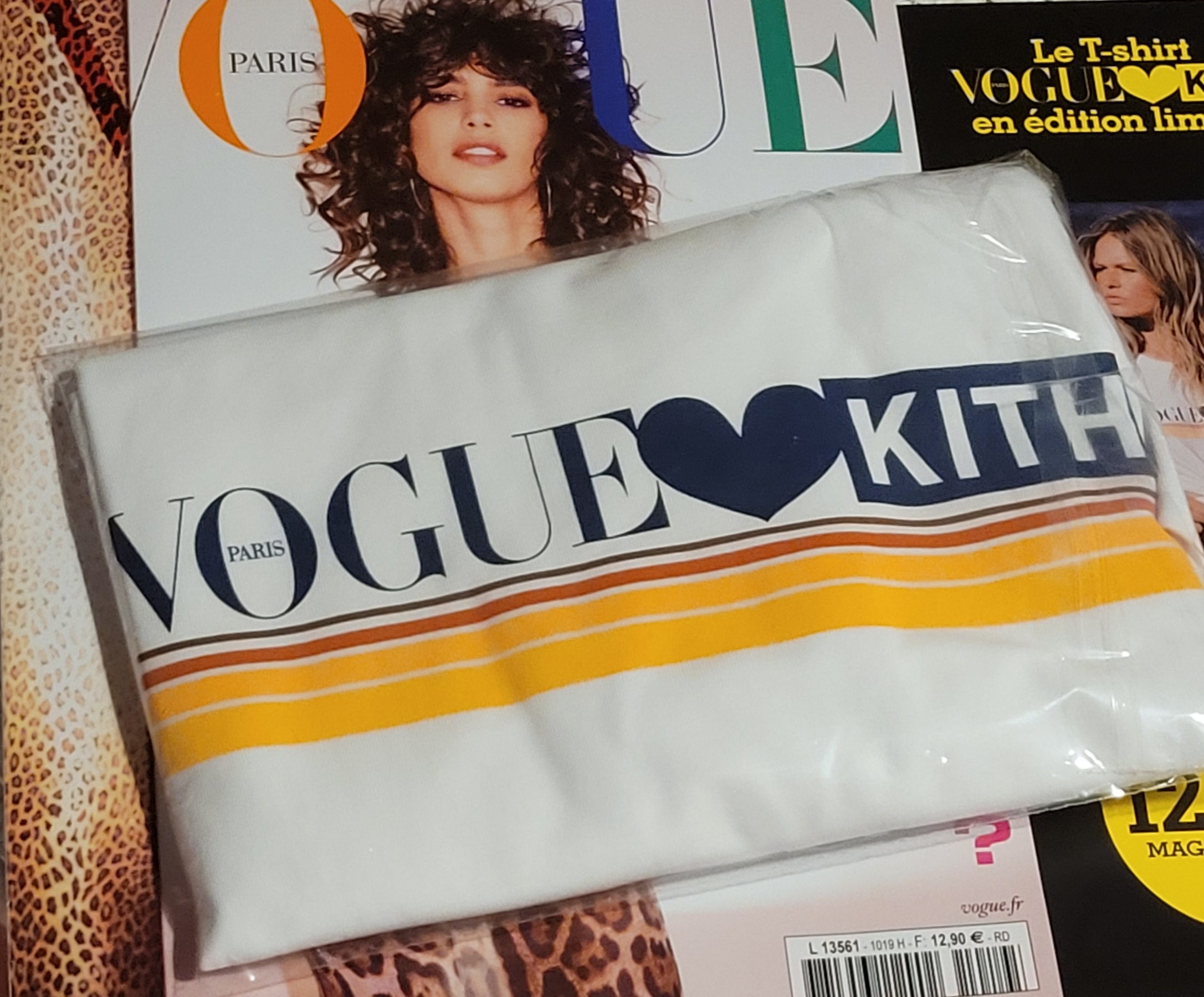 Pour 8⏠en + du prix du magazine Vogue ( 4,90⏠) un tee-shirt inĂ©dit » Vogue Loves Kith » vous sera offert !