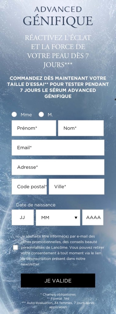 Envie de tester, gratuitement, pendant 7 jours, le sérum Advanced Génifique de Lancôme ? Si oui, ce qui va suivre va te plaire ! Un peu de lecture et le lien 😉