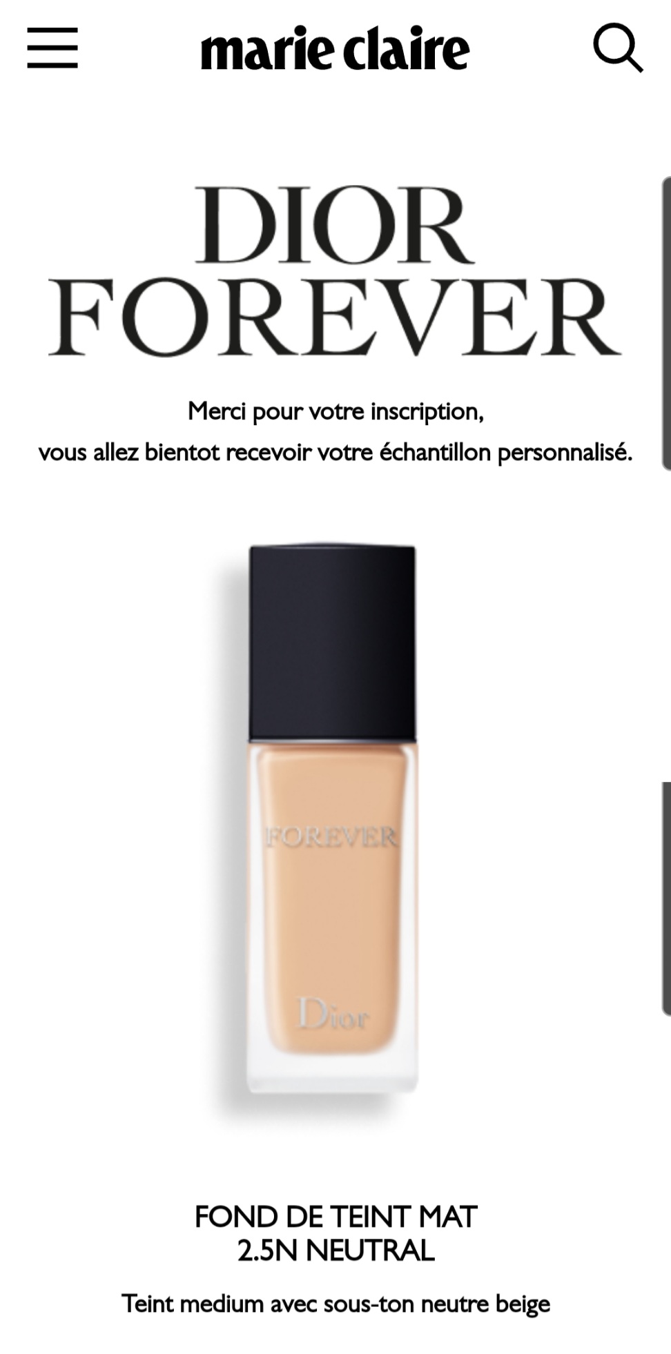 Cette fois-ci, c’est le nouveau fond de teint » DIOR FOREVER » qui est à découvrir ! Merci au magazine Marie-Claire 🙏🙂