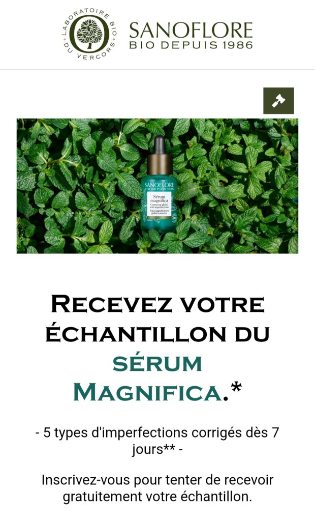 En ce 1er Novembre, je vous propose une demande d’échantillon gratuit du sérum Magnifica de Sanoflore 🌱