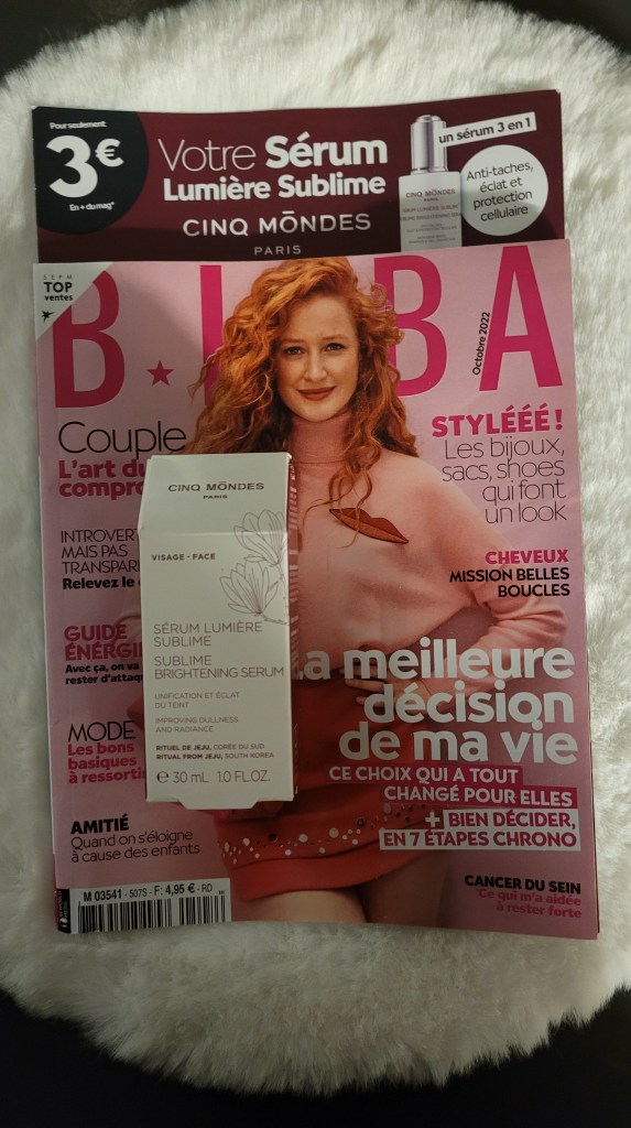 Deuxième bon plan magazine avec le magazine Biba qui vous propose pour 3€ en + du prix du magazine le sérum Lumière Sublime de la marque Cinq Mōndes ✨️