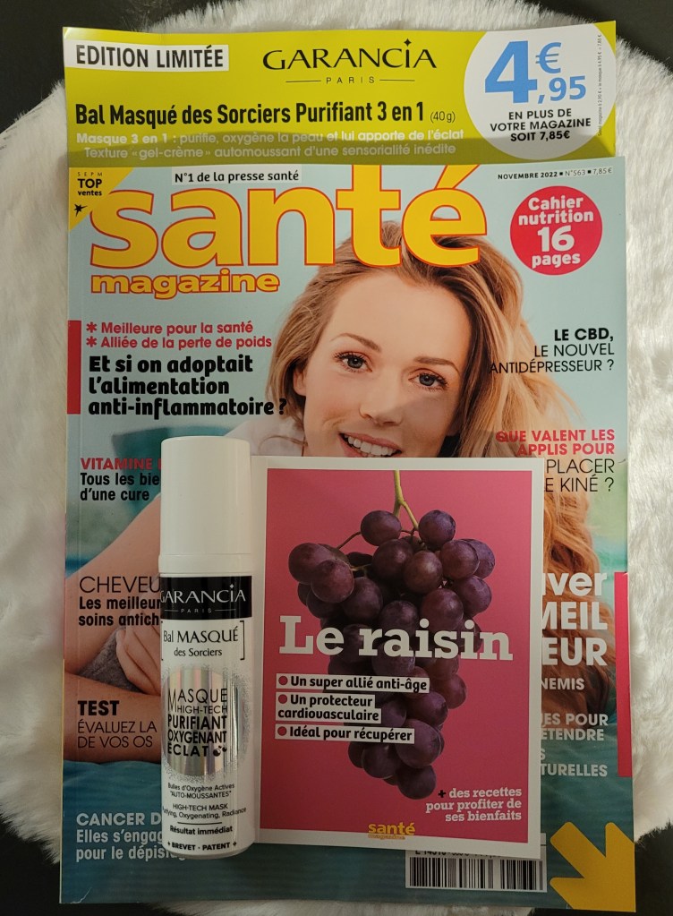 Troisième bon plan avec le Santé Magazine qui vous propose soit le masque Bal Masqué des Sorciers Purifiant 3 en 1 de Garancia à 4,95€ en + du prix du magazine