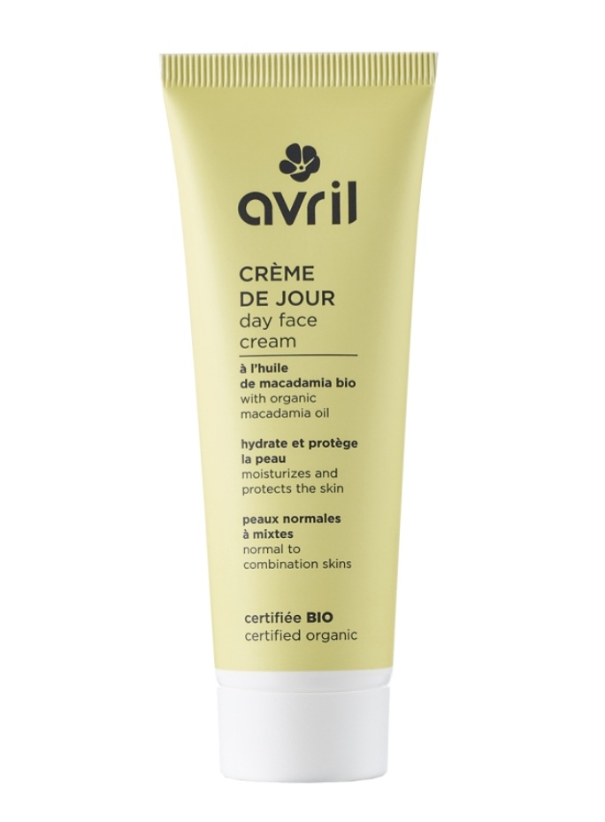 - La crème de jour à l’huile de macadamia bio et d’amande bio ( tube de 50 ml valeur de 7€ site d’Avril . )