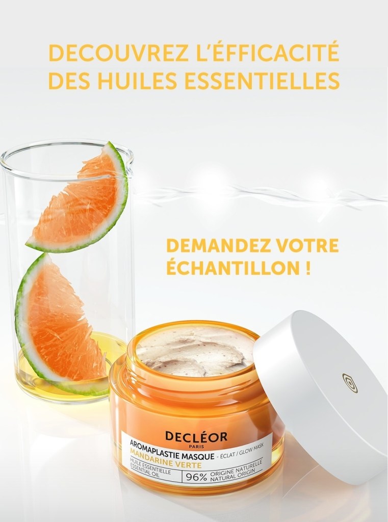 Aujourd’hui, je vous propose de recevoir un échantillon de l’aromaplastie masque à la mandarine verte de Décleor 🍊