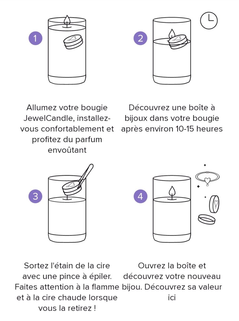Pour la petite histoire, ce sont des bougies parfumées aux senteurs fleuries, gourmandes ou fruitées qui cachent dans leur cire de jolis bijoux en argent. Avec JewelCandle, l’effet de surprise est toujours garanti ! Le bijou apparaît après quelques heures de combustion et sa valeur se découvre sur le site JewelCandle.fr .