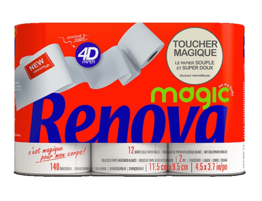 vous avez un super bon plan sur le papier toilette Renova Magic 4D 12 rouleaux ( et aussi sur l’essuie-tout Design recyclé 3 maxi rouleaux) .