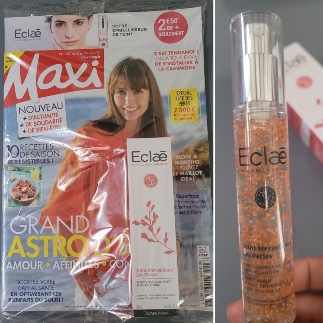 Nouveau bon plan avec cette fois-ci le Maxi Mag .Pour 2,50€ en + du prix du magazine ( 1,99€ ) soit 4,49€ le tout , découvrez le soin embellisseur de teint " Teint merveilleux ~ les perles Éclaé ~ Disponible du 14 juin au 11 juillet 2021 ~ Le soin Teint merveilleux - les Perles est un basique indispensable … Lire la suite ~ Maxi Mag / Éclaé ~